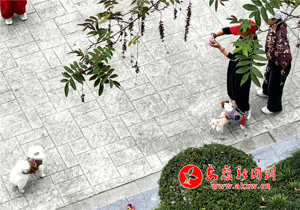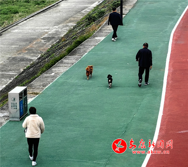 11月8日下午,金川街沿江步道有市民遛狗未牽繩。(圖文/馬歡)