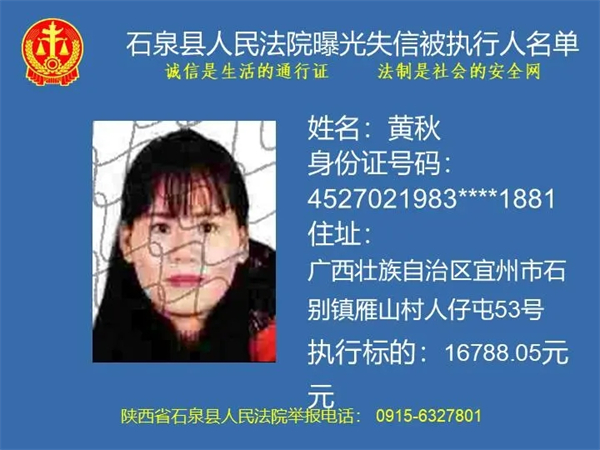 為了進(jìn)一步加大執(zhí)行力度,保障勝訴當(dāng)事人的合法權(quán)益,推進(jìn)社會誠信體系建設(shè),依照《中華人民共和國民事訴訟法》《最高人民法院關(guān)于公布失信被執(zhí)行人名單信息的若干規(guī)定》等法律、司法解釋的有關(guān)規(guī)定,現(xiàn)對一批已進(jìn)入執(zhí)行程序,且尚未全部履行義務(wù)的被執(zhí)行人進(jìn)行媒體曝光,歡迎廣大群眾支持石泉縣人民法院的工作,向我院提供被執(zhí)行人的財產(chǎn)線索,使生效法律文書能夠得到切實執(zhí)行,讓人民群眾切實感受到公平正義就在身邊。