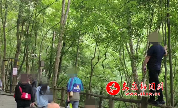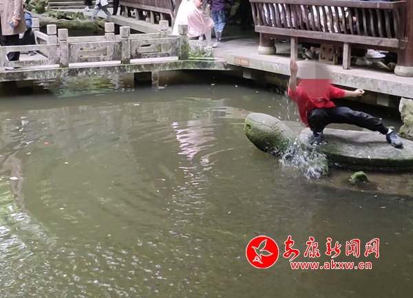 5月2日,香溪洞風景名勝區有游客違反景區安全規定,存在攀爬護欄,下池嬉水等不文明旅游行為。(實習記者 冉麗雯)