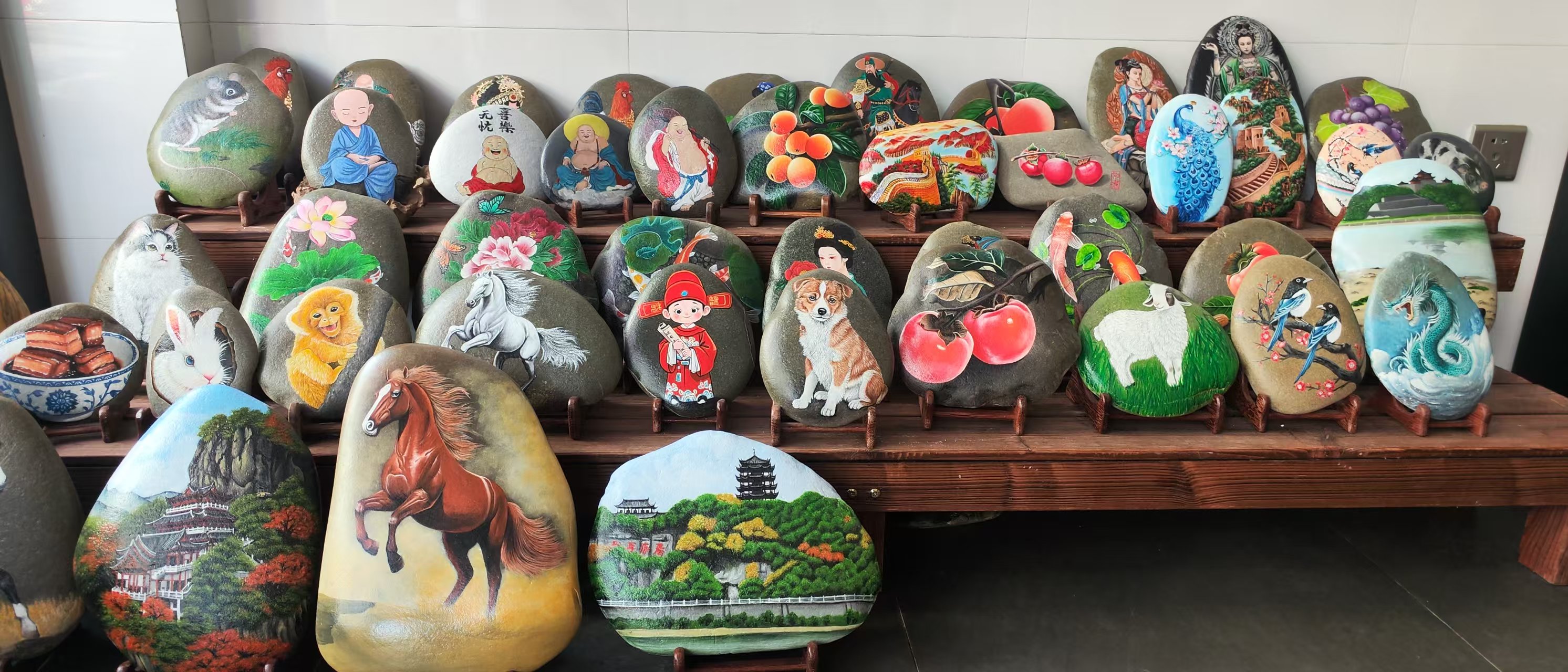 就在困頓迷茫之際,心底深藏著對繪畫的熱愛,成了照亮她前行的微光。為了排解病痛的折磨,也為了謀求一絲收入,李景麗重新拾起畫筆。起初只是在紙上作畫,一次偶然在網(wǎng)上看到石頭畫創(chuàng)作,她便萌生了嘗試的念頭。第一幅石頭畫,用的是母親壓菜缸的石頭,李景麗對著照片精心勾勒,成品出爐的那一刻,滿滿的成就感讓她重燃信心。從此,她便與漢江石相伴,每天除了吃飯睡覺,其余時間全都撲在繪畫上,山水畫、靜物、飛天神女……各類題材信手拈來,只需一張參考照片,她便能畫得惟妙惟肖。追求極致的她,總要耗時數(shù)天,直至畫作達(dá)到心中滿意的標(biāo)準(zhǔn)才肯停筆。繪畫,讓她暫時忘卻了病痛的苦楚與生活的憂愁,讓黯淡的日子重新有了溫度與希望。