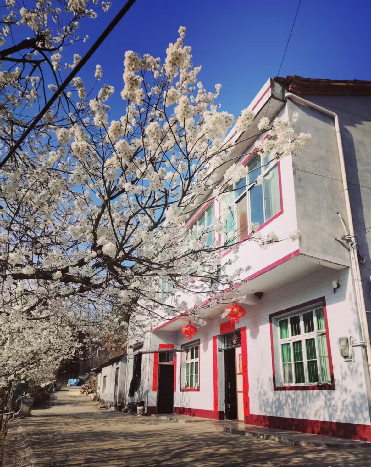 城關鎮(zhèn)月河村庭院旁的櫻花爛漫盛放