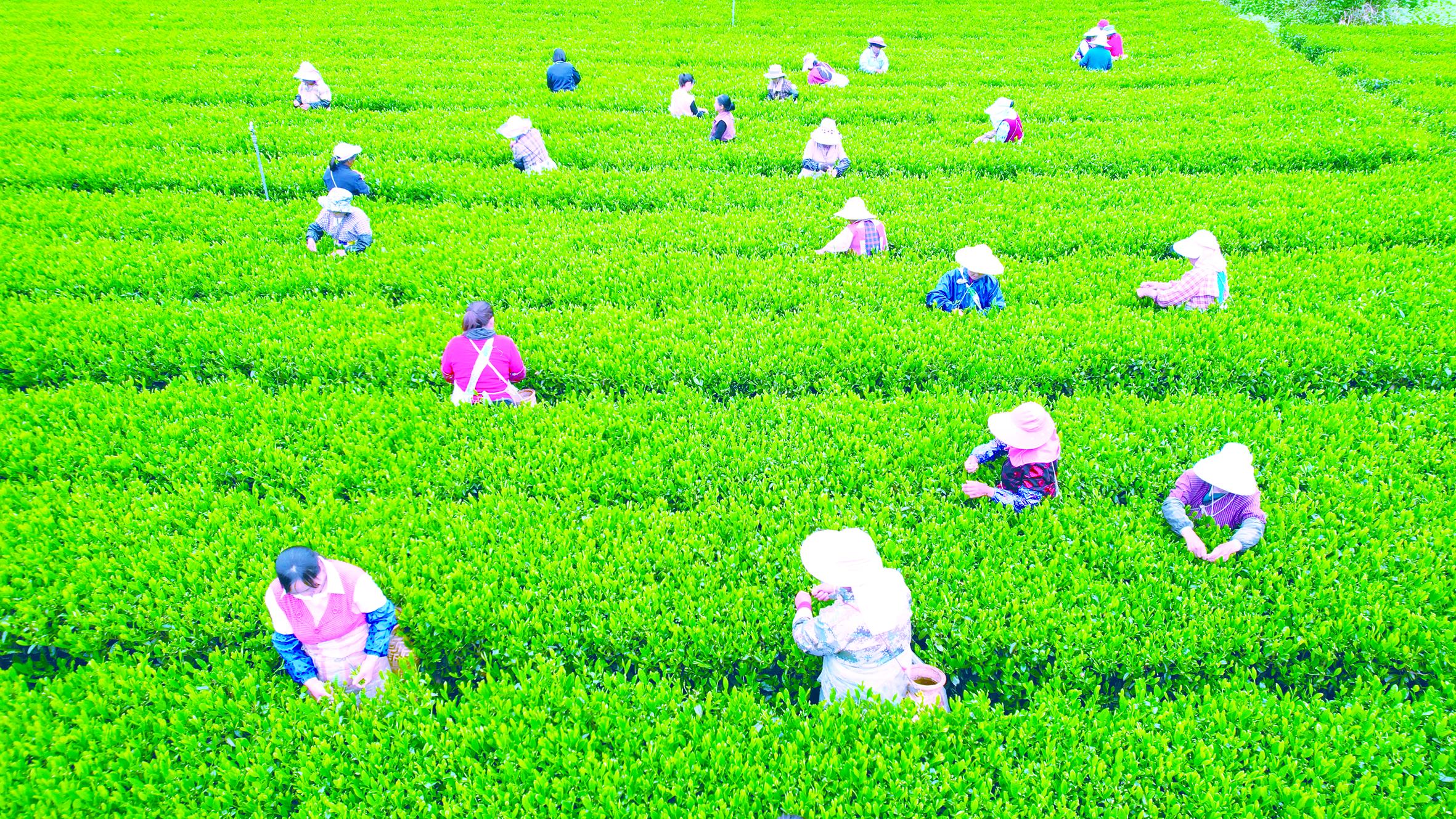 近日,在紫陽縣煥古鎮春堰村茶園基地,茶農正在采摘春茶鮮葉。儲茂銀 攝