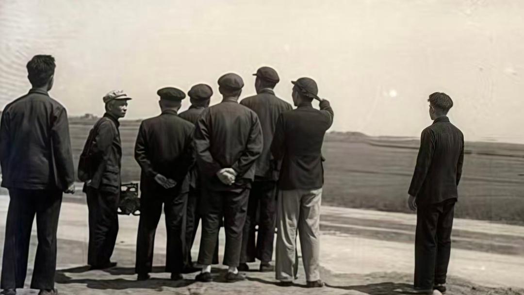 1955年,校長彭康與教授們在西安麥田中踏勘新校址(圖片來源:西安交通大學新聞網)